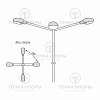 Конструктивно развороты кронштейнов К4-0,5-1,0-/90-Ф4 исполняются по схеме «4 рожка под углом 90 градусов». При этом угол разворота между рожками в вертикальной плоскости имеет диапазон от 0° до 180°, в связи с чем расположение светильников у четырехрожковых кронштейнов может иметь любую вариантность.